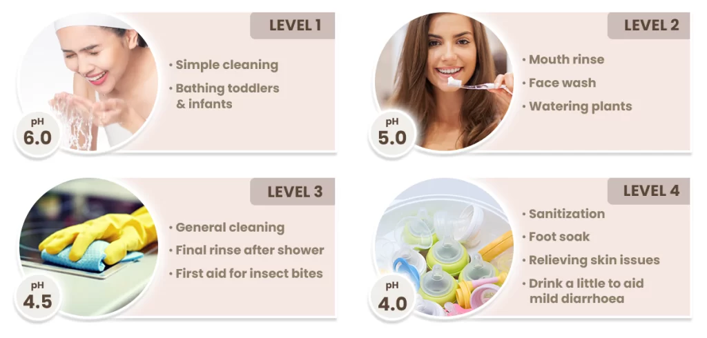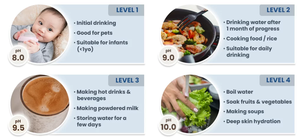 9 Levels of Water Selections with Different pH Levels